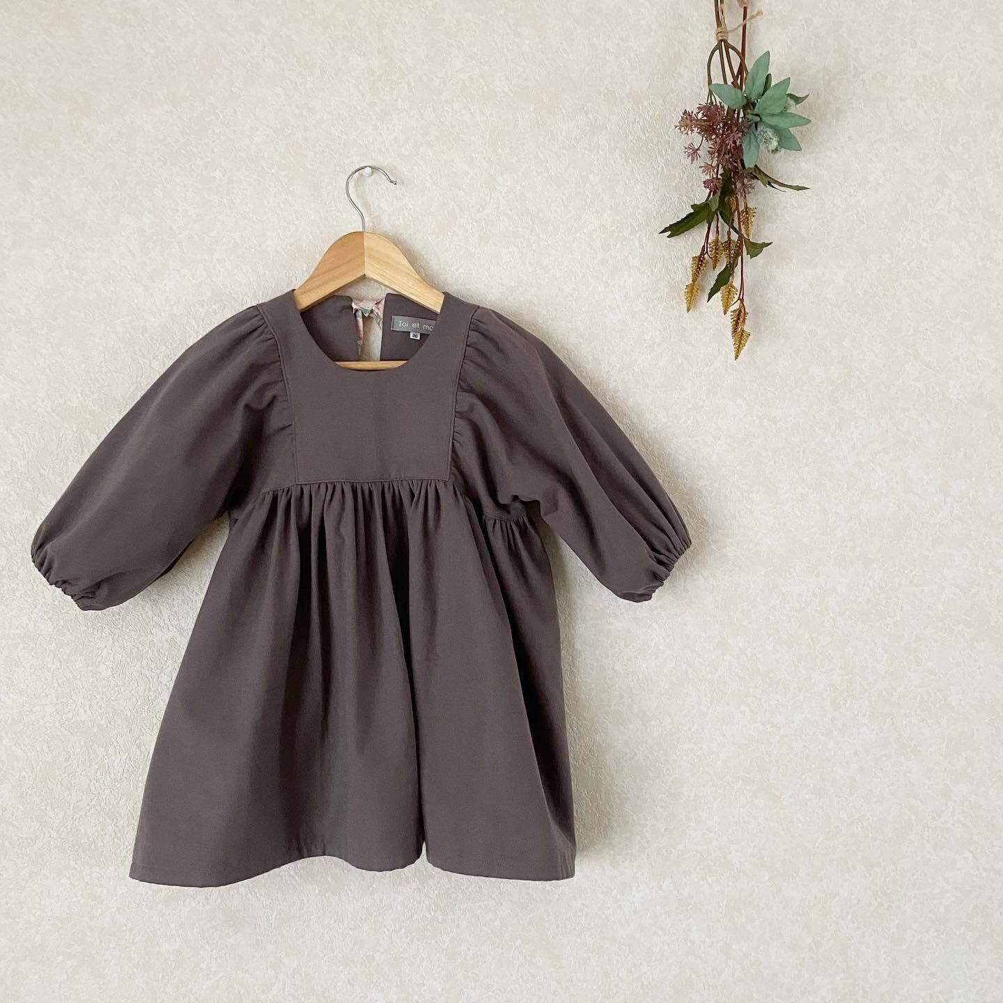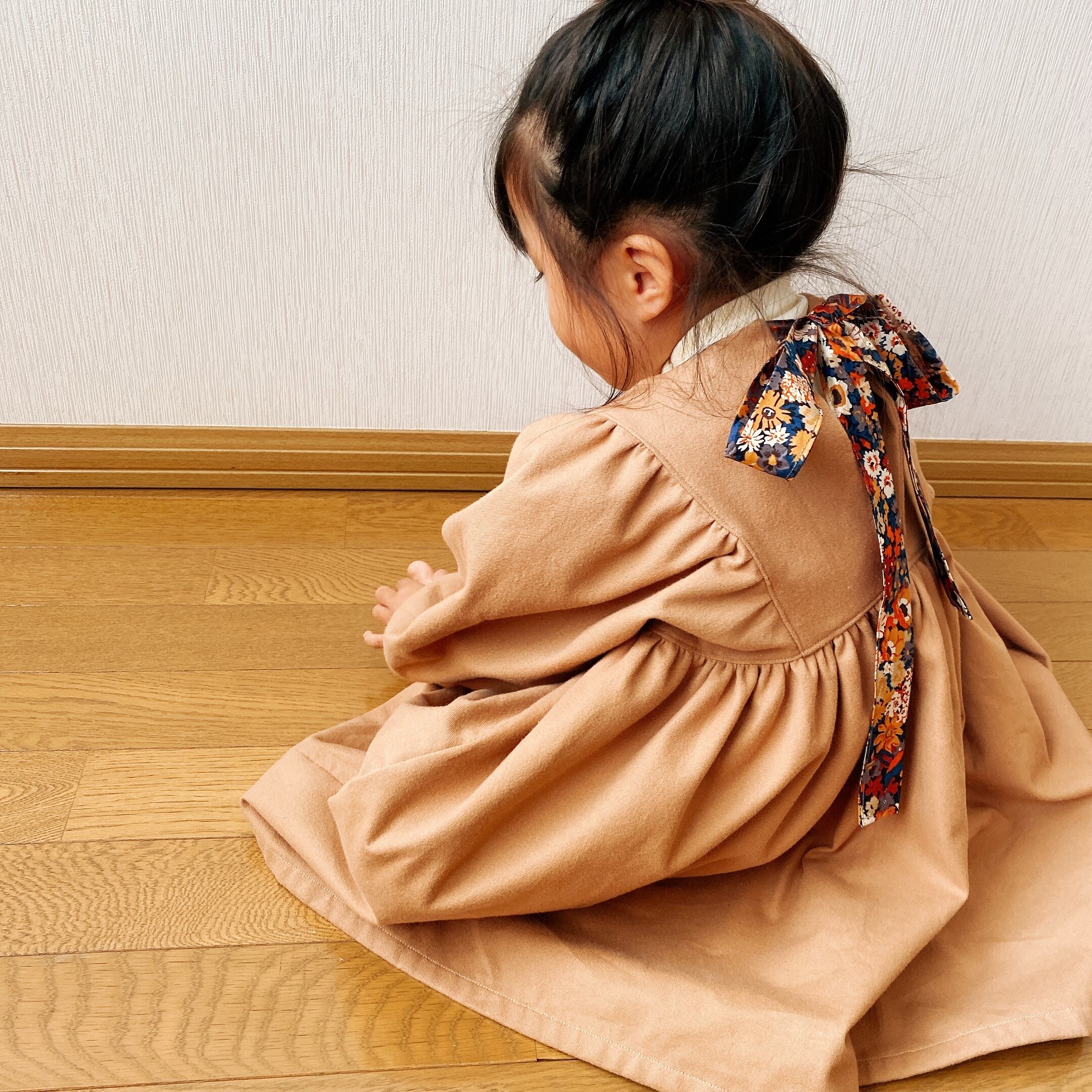 生地をたくさん使っているので、スカート部分はたっぷりのギャザーでふんわりしており、ぽわん袖もとっても可愛いです⚮̈