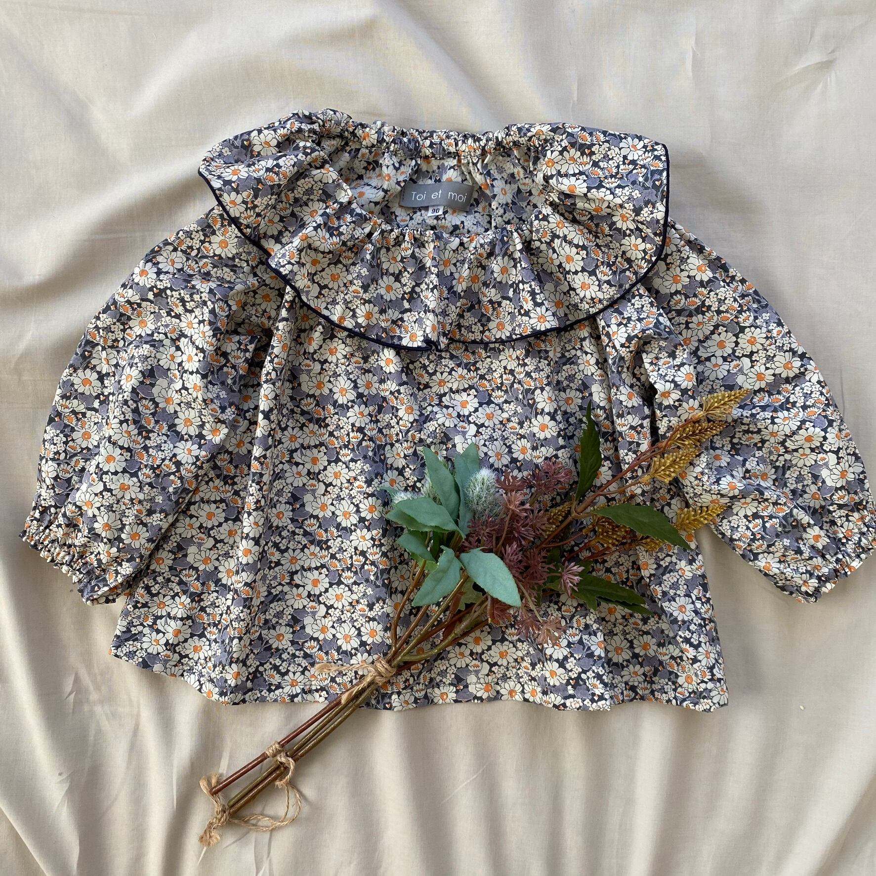 LIBERTY❃︎フリルブラウス&ワンピースのセット(ネイビー×アリスダブル)