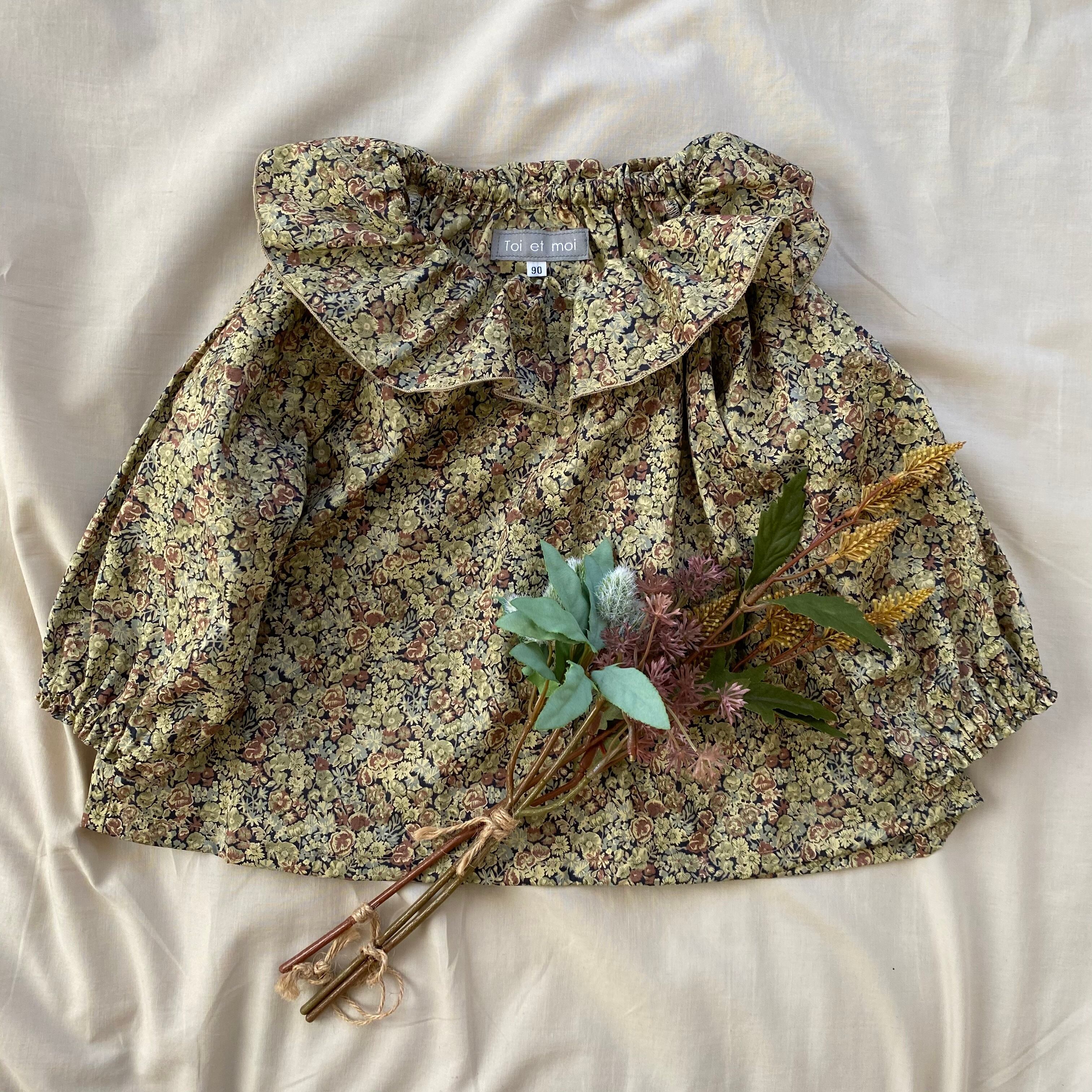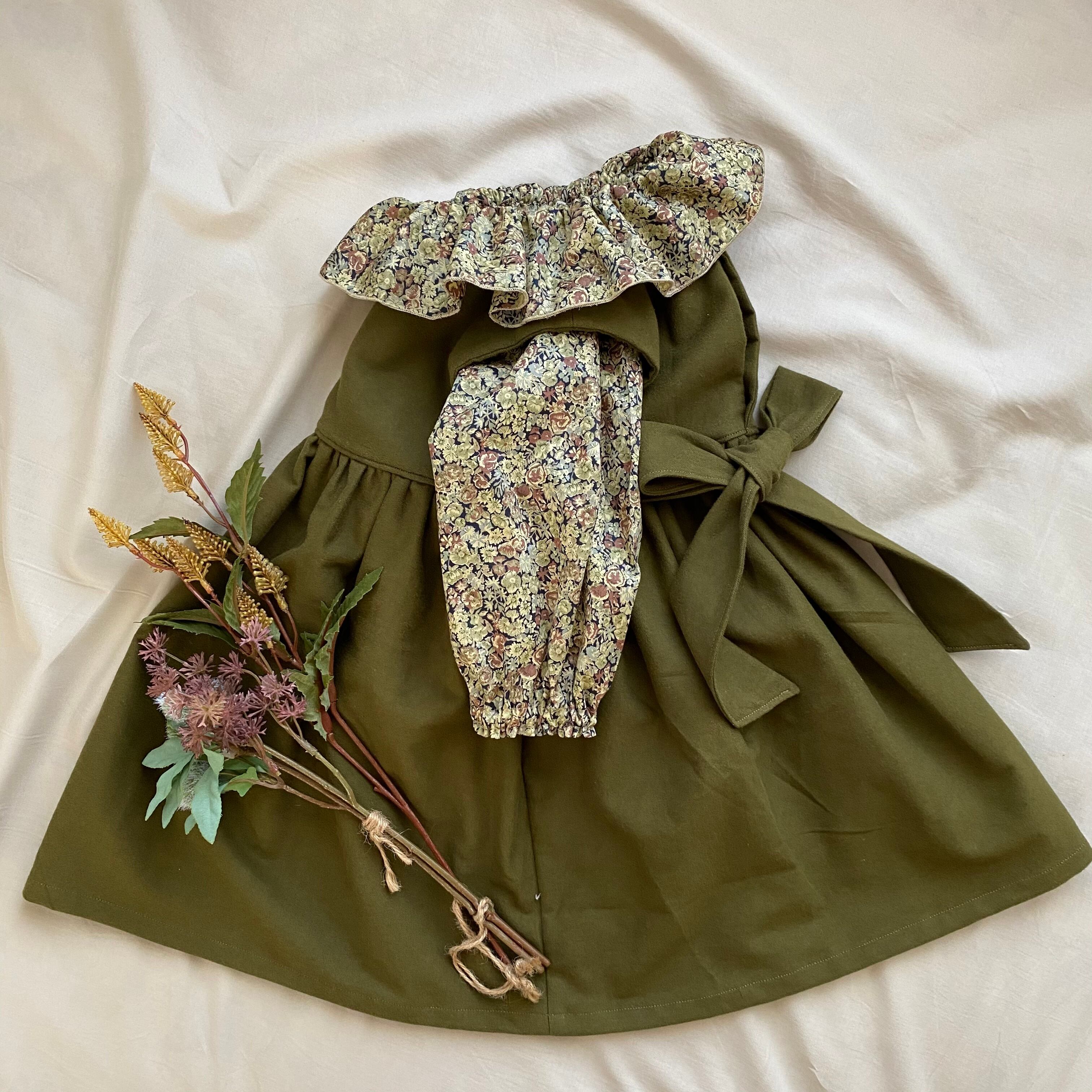 リバティ生地のフリルブラウスと、あったかコットンフランネルで作ったツーウェイリボンワンピースのセットになります❃︎