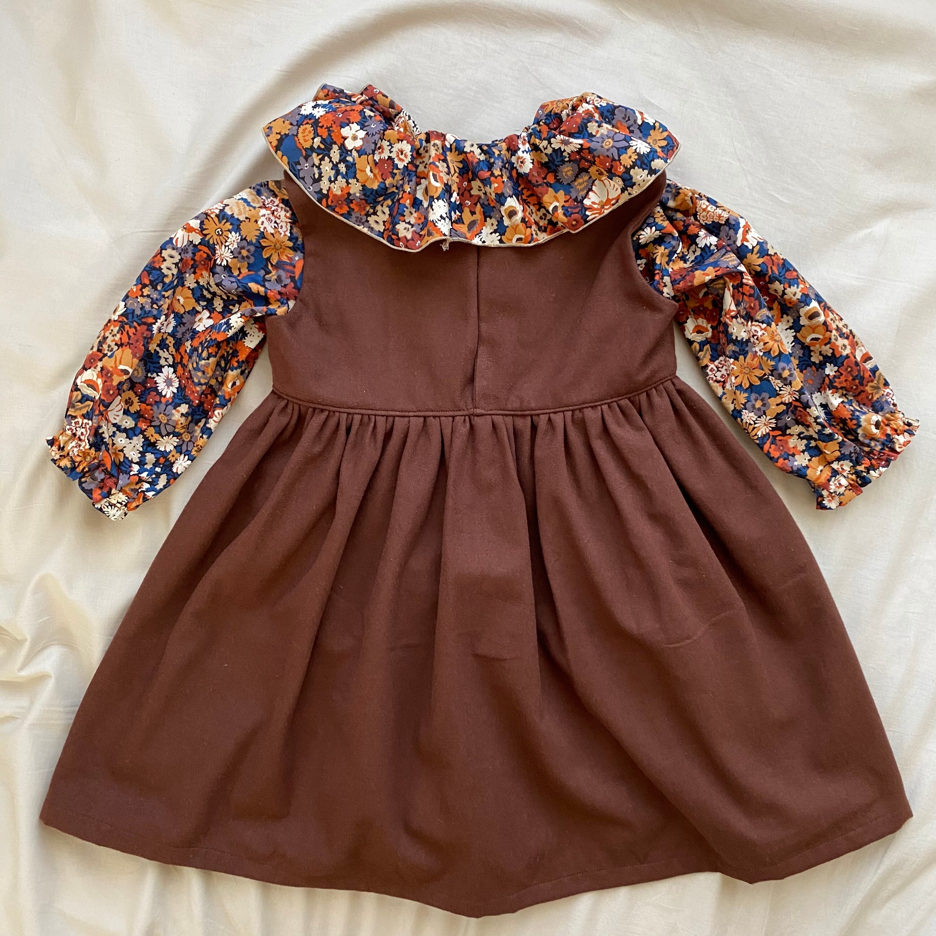 リバティ生地のフリルブラウスと、あったかコットンフランネルで作ったワンピースのセットです˖⋆
