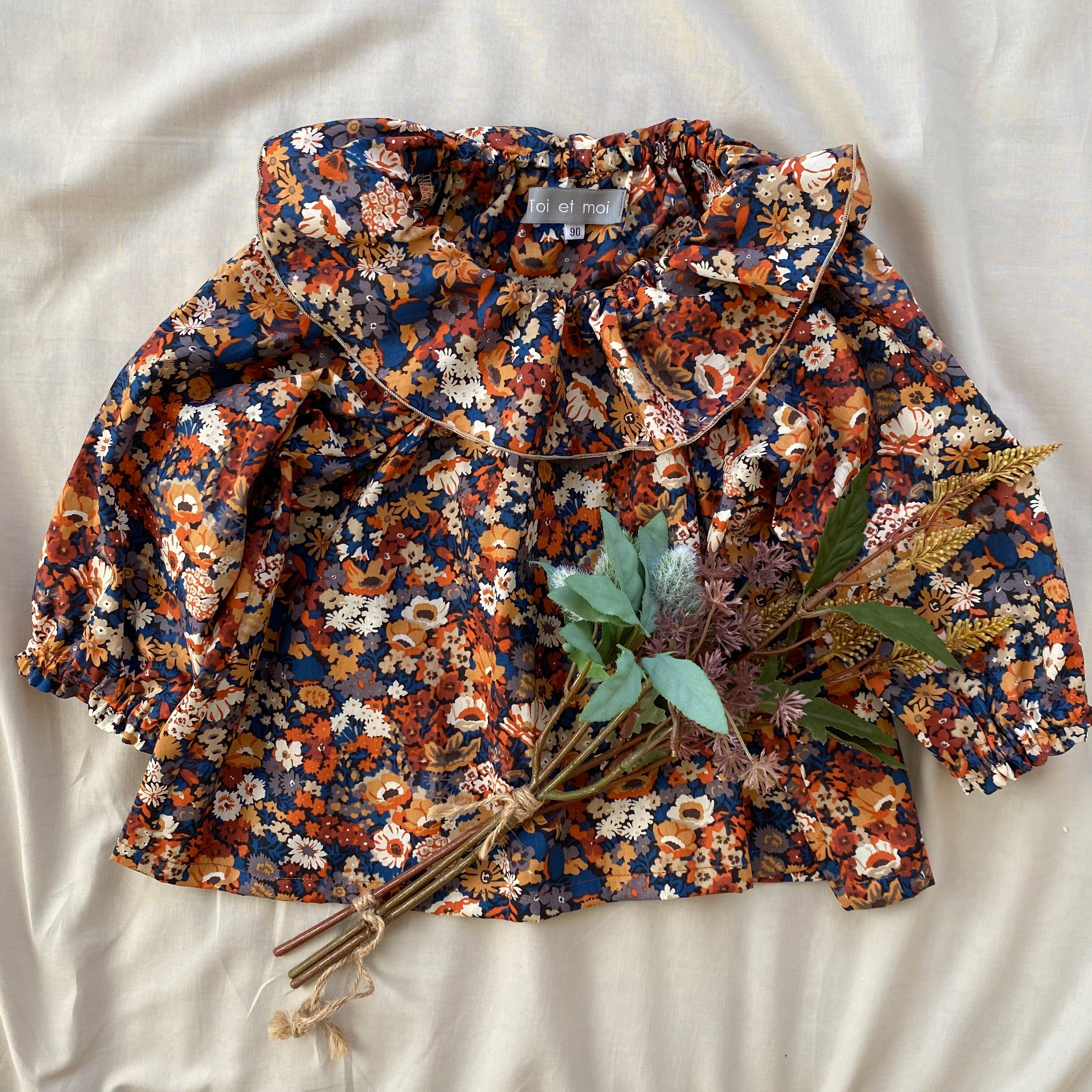 リバティ生地のフリルブラウスと、あったかコットンフランネルで作ったワンピースのセットになります❃︎